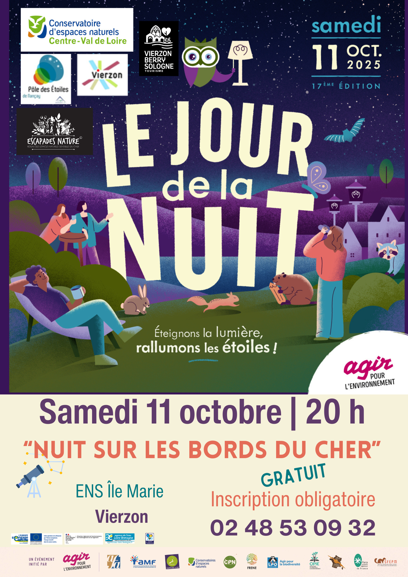 Depuis 2015, le Cen Centre-Val de Loire, en association avec le Pôle des étoiles de Nançay et la ville de Vierzon, organise dans le cadre du Jour de la Nuit, une balade nocturne pour découvrir ou redécouvrir le plaisir d’observer le ciel et la faune nocturne et comprendre l’impact de la pollution lumineuse sur notre environnement. Pour poursuivre, en 2025 cette action, en partenariat avec le Pôle des étoiles de Nançay, nous organisons à nouveau une balade nocturne sur les Bords du Cher, vers le jardin de la Genette.